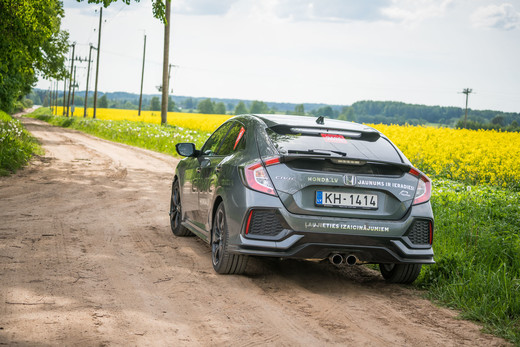 Toties jaunā “Honda Civic” ir pārsteidzošs auto. Daudz vietas salonā un bagāžniekā, stilīgs un agresīvs izskats, tikai daži bamperu dizaina risinājumi šķiet nedaudz pārspīlēti, pie tam versijā ar automātu aizmugurē nemaz nav redzami dubultā izpūtēja gali – kā tas var būt tik agresīva dizaina mašīnai? Abas testētās “Civic” automašīnas bija aprīkotas ar 185 zirgspēku benzīna dzinēju, tikai vienai bija manuālā pārnesumkārba, bet otrai – automāts. Turaidas apkārtnes šaurajos, līkumotajos, nolāpītā asfalta seguma ceļos mans braukšanas baudas etalons ir tieši “Honda Civic 1.5 sport Navi MT”, un tā cena ir 22 800 eiro.