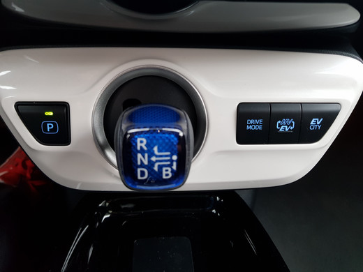 Visiem pierasts, ka pārnesumu pārslēgšana notiek ar visai pamatīgām pārnesumkārbu svirām, arī elektroniskie džoistiki joprojām mēdz būt visai prāvi, tad neliels pārsteigums ir mazā braukšanas režīmu pārslēgšanas svira Prius priekšējā panelī. Simpātiski un ērti. Ne tik ērts ir sēdekļu apsildes slēdžu novietojums nišā zem centrālā paneļa. Tos var tikai atrast īpaši meklējot.