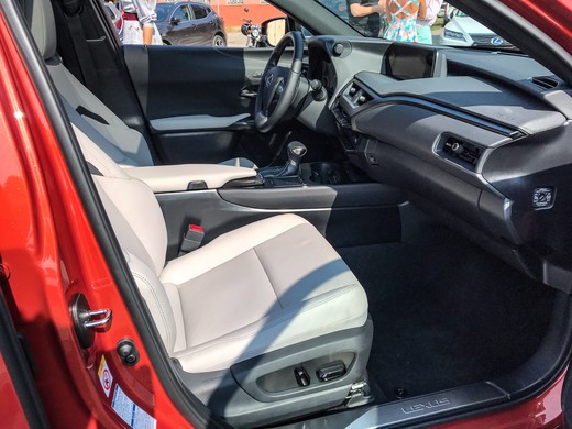 Dažādi dizaina elementi no citiem modeļiem aizgūti arī salonā, piemēram, klimata kontroles vadības panelis, braukšanas režīmu pārslēdzēji, durvju rokturi, tomēr tas viss meistarīgi integrēts savā – unikālā UX salona izkārtojumā.