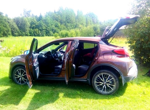 4360 mm garais, 1795 mm platais un 1565 mm augstais "C-HR" krosovers apveltīts ar 2640 mm riteņu bāzi, 15 cm klīrensu, augstu plecu līniju un izceltām riteņu arkām. "Toyota C-HR" ārējos izmēros pārspēj ne vien "Nissan Juke", bet arī "Opel MokkaX", "Volkswagen T-Roc", "Jeep Renegade" un "Honda HR-V". Nedaudz lielāki virsbūves izmēri ir "Seat Ateca", "Skoda Karoq", "Nissan Qashqai" un "Mitsubishi Eclipse Cross". Kosmiskās "C-HR" virsbūves formas nav ļāvušas panākt lielu bagāžnieka ietilpību — tikai 377 litri. Klases ietvaros mazāki bagāžnieki ir tikai "Jeep Renegade", "Mazda CX-3", "Fiat 500X" un "Opel MokkaX", visiem pārējiem – lielāki. Toties "C-HR" salonā četri pieaugušie jutīsies ļoti ērti. Iekāpjot auto salonā, pat aizmirstas, ka sēdi "Toyota", jo priekšējais panelis ir veidots negaidīti radikāls. Tehnokrātiskais interjers pēc durvju aizvēršanas tevi cieši apskauj, un acu priekšā atdzīvojas virtuālu mērskalu panelis. Uz vadītāju orientētais kokpits ir industriālā dizaina meistardarbs, kurā harmoniski sadzīvo pretī pavērstā "planšete" un funkciju pogas "Lexus" stilā, arī salona apdare atgādina kaut no "Premium" automobiļu kastas. Aizmugures sēdekļos ir vairāk vietas, nekā sola automobiļa dizains, diviem pasažieriem pietiks telpas gan plecu, gan ceļgalu apvidū, trešajam gan iespiesties pa vidu nebūs īpaši ērti, ja vien tas nav pamatskolas skolēns. Skaistums tomēr prasa upurus, kosmiskās formas liedz pārskatāmību, aizmugures pasažieriem ir ierobežots skats pa sānu logiem, bet vadītājam problēmas rodas, manevrējot atpakaļgaitā. Viņam gan palīdz platleņķa kamera un parkošanās sensori, kas pieejami abās dārgākajās komplektācijās. Jau "Active" bāzes aprīkojumā iekļauta divzonu automātiskā klimata sistēma, 4,2 collu skārienekrāns, atpakaļskata kamera, LED dienas gaitas lukturi, lietus un krēslas sensori. Pieejama arī adaptīvā kruīzkontrole, "Toyota safety sense" sadursmes novēršanas sistēma (prot sabremzēt auto līdz pat apstādināšanai) ar gājēju noteikšanas funkciju, joslu maiņas asistents (prot automātiski koriģēt stūri), ceļa zīmju atpazīšanas sistēma un ļoti noderīgais aklo zonu monitors.
