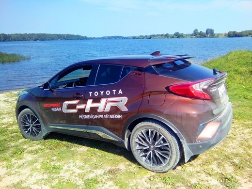 "Toyota" krosovers izgatavots uz jaunās platformas TNGA, kas šobrīd tiek izmantota ceturtās paaudzes "Prius" hibrīda ražošanai un līdz 2020. gadam kļūs par pamatu vairāk nekā pusei "Toyota" modeļu. Saīsinājuma "C-HR" atšifrējums trijos veidos: Compact High Rider, Cross Hatch Runabout vai Coupe High Rider. Varat izvēlēties pēc patikas! Mums iepatikās pēdējais variants. Kupejas definīcija gan pieprasa tikai divas durvis, bet šā auto aizmugurējo durvju rokturis ir veiksmīgi paslēpts. Tātad paaugstināta četrdurvju "coupe", nevis "parketa džipiņš", tomēr tai ir lielāks klīrenss un augstāka sēdpozīcija, ko laikam arī nozīmē "high rider". Izskats kā bērnībā iekārotiem japāņu spēļu auto modelīšiem — tobrīd vēl dabā neeksistējošiem auto ar hipertrofēti lieliem riteņiem un atraktīvām kosmiskas formas virsbūvēm. Katrā ziņā, šī automobiļa pircējiem nebūs grūti pamatot savu izvēli.