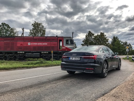 Ļoti patika gaitas īpašības – auto labi un līgani uzņem ātrumu. Varbūt BMW cienītājiem pietrūks zibenīgās pārnesumkārbas reakcijas, jo A6, uzsākot braukt, ir neliela aizture, kas nav būtiska, bet pamanāma. Tomēr pēc tam gaitā pārslēgšanās notiek ātri, ļoti liels paātrinājums. Auto uzvedās stabili un komfortabli arī lielākā ātrumā. Atsevišķi vēlos izcelt joslas ieturēšanas palīgsistēmu. Ja Q5 sistēma reaģēja diezgan tuvu līnijai, pat uzbraucot uz tās, tad šajā A6 varēja manīt, ka sistēma cenšas noturēt automobili starp joslām, ievērojot intervālu no līnijas. Taču tas var radīt arī zināmas problēmas, piemēram, ja braukšanas josla pēkšņi maina virzienu, kā uz Jelgavas šosejas pie Dalbes, auto to uztvēra kā bīstamu situāciju un veica diezgan strauju manevru uz labo pusi, kur tobrīd blakus atradās cita automašīna. Šajā gadījumā paglāba tas, ka rokas bija uz stūres un šo manevru bija iespējams izlabot.