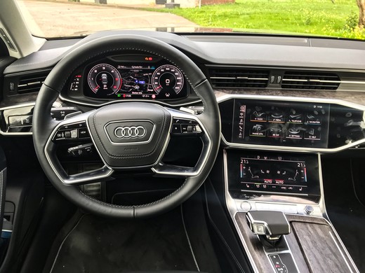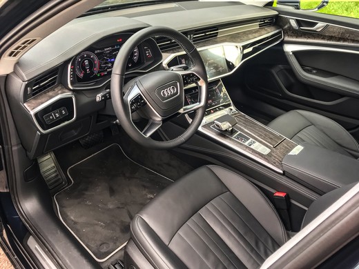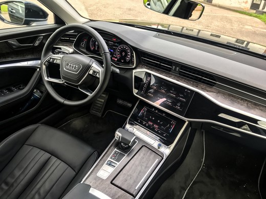 Līdzība ar A8 (un arī A7 un Q8) turpinās automobiļa salonā, kur paneļu arhitektūra starp šiem modeļiem ir teju identiska. Atšķiras vien ventilācijas atveru risinājumi. Gan virsmas, gan formas, gan risinājumi ir mats matā. No vienas puses pat rodas doma, kāpēc gan vairs izvēlēties A8, ja A6 izskatās līdzīgi, aprīkots ar līdzvērtīgām tehnoloģijām un arī var piedāvāt augstu komfortu par zemāku cenu. Taču drīz vien arī atbilde ir rokā – lētāki apdares materiāli. Agrāk VAG grupā Audi bija priekšzīmīgais etalons par montāžas kvalitāti un apdares materiāliem, kam Volkswagen modeļi skrēja nopakaļus, tad šobrīd sliekšos apgalvot, ka līdzvērtīgi aprīkota Passat automobiļa salona apdare atstāj augstvērtīgāku iespaidu. Nepārprotiet, šajā Audi modelī ar montāžas kvalitāti arī ir viss kārtībā, taču pārsteidz izvēlētie materiāli. Piemēram, priekšējā paneļa virspuse ir apvilkta ar mākslīgo ādu, bet zem tās ir plastmasas panelis, pa kuru pieklauvējot, skan viss panelis. Citos šādas klases (un arī mazākos) modeļos šie paneļi ir polsterēti. Arī fiksatori glāžu turētājos šķiet veidoti no pašas lētākās plastmasas. Tāpat arī virzienrādītāju un logu tīrītāju sviras, kas varbūt vēl iederas Q2 krosoverā, A6 izskatās prasti un lec ārā no elegantā tēla. Starp citu, šādas pašas sviras ir arī dārgajā Q8 modelī.