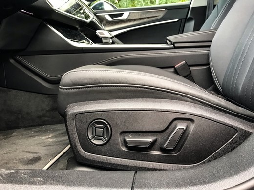 Atrast šķietami ērtu sēdpozīciju jebkurā A6 nenākas grūti. Slēdžu un displeju izvietojums ir ļoti ergonomisks – šķiet, kā uzvilkt speciāli piegrieztu uzvalku. Tomēr pēc apmēram 130 km mērošanas jāsāk knosīties un rodas vēlme izkāpt un izstaipīties. Elektriski regulējamajiem ādas sēdekļiem ar atmiņas funkciju, par kuriem jāšķiras no 1 099 EUR (standarta aprīkojumā izpaliek elektropiedziņas), pietrūkst atbalsta kājām un sāniem, tādēļ ar laiku gribas sēdpozīciju pamainīt. Domājams, ka situācija būtu krietni labāka ar papildaprīkojumā pieejamajiem komforta sēdekļiem (2 111 EUR) vai sporta sēdekļos (1 585 līdz 2 661 EUR atkarībā no apdares). Aizmugurē ir gandrīz limuzīna cienīgi plašumi – vietas atliku likām ir gan kājām, gan galvai, gan arī tam, lai blakus sasēstos 3 cilvēki.