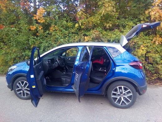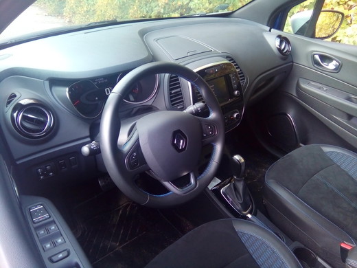 Iekāpjot skaisti zilajā "Renault Captur", nevar nepamanīt un nesajust salona apdares uzlabojumus, kas manāmi it visur. Krosovers ir mantojis mazā brāļa "Clio" jauneklīgo interjeru, kurā pieejama plaša krāsu dažādība un individualizācijas iespējas. Franču dizaineriem izdevies apvienot modernu arhitektūru, ko raksturo plastiskas formas un dzīvespriecīgas krāsas, ar optimālu ergonomiku. "Captur" salons no "Clio" atšķiras vienīgi ar augstāku sēdpozīciju un plašāku telpu plecu un galvas apvidū. Paaugstinātais vadītāja sēdpozīcijas stāvoklis (10 cm augstāks nekā "Clio") rada pārliecību, bet ērtības braucējiem nodrošina ietilpīgs salons: attālums no akseleratora pedāļa līdz aizmugurējo sēdekļu atzveltnei ir 1730 mm, savukārt attālums starp priekšējo un aizmugurējo sēdekli aizmugurē sēdošajiem ceļgalu augstumā ir 215 mm (par 75 mm vairāk nekā "Clio"), tātad par vietas trūkumu sūdzēties neklājas.