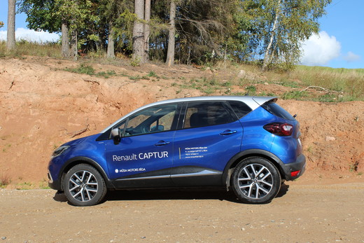 Testa braucienā devāmies ar koši zilo "Renault Captur", kuru uz priekšu dzen 1,3 litru benzīna dzinējs ar 150 zirgspēku jaudu, kas ir vairāk nekā pietiekama mašīnītei ar 1350 kg pašmasu. Auto ripo ļoti viegli, radot tādu rotaļīgu braukšanas sajūtu. Dzinējs nodrošina elastīgu dinamiku gan pilsētas gan šosejas režīmos, jaunais automāts darbojas gandrīz nemanāmi. Starp priekšējiem sēdekļiem atrodas "Eco" režīma poga, kuru ieslēdzot, vadības sistēma neļauj strauji sasniegt augstus apgriezienus, ekonomējot degvielu. Taču pat bez "Eco" režīma dzinējs nodrošina draudzīgu degvielas patēriņu - 6 litri uz nobrauktiem 100 kilometriem. Mūsu auto ir aprīkots ar gandrīz pašu pilnāko aprīkojuma paketi – S-Edition, un maksā 20 tūkstošus eiro. Vēl atliek tikai "Initiale Paris", kam cenas starpība ir tūkstotis ar mazu astīti. Ja vēlaties ekonomiskāku auto, "Captur" ir pieejams ar jaunāko no "Renault" spēka agregātiem "Energy TCe 90" - mazo trīscilindru dzinēju ar 898 cm3 darba tilpumu, kas, pateicoties turbīnai, spēj attīstīt 90 ZS jaudu. Šāds auto par sākumcenu ap 14 tūkstošiem eiro spēj apmierināt visas ikdienas vajadzības, turklāt ar vidējo benzīna patēriņu 4,9 l/100 km.