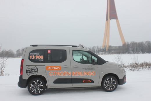 Pēc skata arī Berlingo vairāk atgādina minivenu kā bulku vāģi. Viss kopā izskatās labi. Berlingo uzrunā, uzprasās testam. Mums divreiz nav jāsaka, lecam auto un laižamies iekšā satiksmes burzmā.