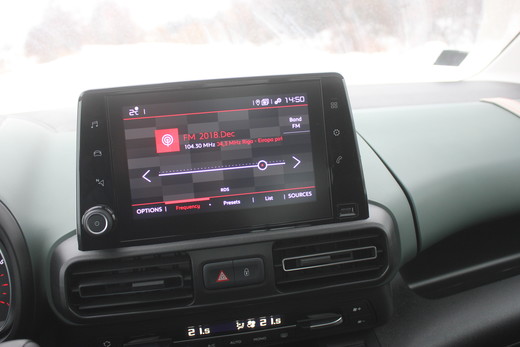 Salonā daudz dažādu kabatiņu un nodalījumu sīklietām. Viens no plauktiem atrodas paneļa centrā tieši aiz vertikālā ekrāna un tāpēc ir grūti pieejams.Interesants risinājums. Cimdu nodalījums nepārsteidz, ietilpība stndarta, taču pār vāku stiepjas ādas(gan jau mākslīgās) siksna. It kā sīkums, bet reāls akcents salona dizainā. Bonuss. Pārnesumu pārslēgšanas svira kā jau tagad bieži "gadās", atrodas neviss grīdā , bet centrā uz izciļņa pie paneļa. Praktisks risinājums. Ņemot vērā precīzo slēgšanos, pārslēgšanas sviras lietošana varētu teikt, bija patīkama. Tas viennozīmīgi apstiprināja labo iespaidu par Berlingo vadības ierīču lietošanu un kopējo ergonomiku. Starpcitu pieminētais izcilnis vismaz testu laikā ceļgalam problēmas neradīja. Bet nišas un nodalījumi joprojām visās malās. Zem cimdu nodalījuma vieta zīmuļiem un marķieriem, Virs priekšējā loga liels plaukts visa auto platumā kartēm, rēķiniem un žurnāliem. Durvīs kabatas pudelēm un citiem sīkumiem. Zem ekrāna izvietojušās ventilācijas lūkas, savukārt vēl zemāk savirknēti galveno funkciju vadības slēdži. Lai ieslēgtu apsildi nav jābakstās ekrānā. Interesantā vietā sēdekļu apsilde - uz tā pamatnes. Neierasti, bet nekādu problēmu. Multimedijs darbojas apmierinoši, sagrupēts labi, daudz laika neaizņem. Viss nepieciešamais "ir uz vietas".