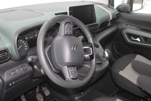 Stūre Berlingo tīri tā nekas, gar kājām neberžas, Stūres diametrs nav liels, taču parocīgs, viegli manevrēt. Konkrētajā auto tā ir multifunkcionāla ar ādas apdari. Dīvaini, bet kruīzs nav starp šīm funkcijām uz stūres. Kruīzkontroles vadība noslēpusies zem stūres, blakus pagrieziena rādītājam. Principā jau netraucē, bet pāris reizes pirksti ķērās. Iespējams ar laiku varētu pilnībā pierast? Ļoti praktisks risinājums pielietots logu apmazgātājam. Izsmidzināšanas sprauslas atrodas pie pašām logu slotiņām.