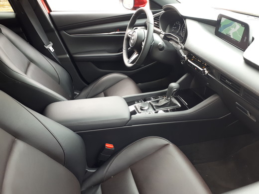 Līdzšinējo paaudžu „Mazda 3” problēma bija nepietiekama trokšņu izolācija salonā. Jaunajā „Mazda 3” pārsteidz tieši klusums! Salonā pasažierus vairs tikpat kā netraucē ceļa, riepu un pretvēja trokšņi, un tikai retumis, strauji paātrinoties, salonā ielaužas benzīna dzinēja sportiskās notis. Par akustisko baudījumu rūpējās BOSE audiosistēma ar 12 skaļruņiem, sniedzot pat rokmūzikas gardēžu ausīm tīkamu skaņas kvalitāti. Info sistēma ar 8.8 collu ekrānu un lielisku grafiku ir viegli un intuitīvi lietojama.