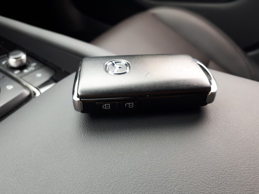 Vienīgais ergonomiskais trūkums, kuru man izdevās atklāt, ir labās puses sānu atpakaļskata spogulītis, kurš novietots pārāk tālu uz aizmuguri, tāpēc šoferītim vairāk jāsagriež galva, tajā ieskatoties. Atceros, kādreiz dažām stilīgām japāņu mašīnām šos sānu spogulīšus novietoja uz priekšējā spārna, - izskatījās efektīgi. Taču “Mazda 3” gadījumā varbūt pietiktu, ja atpakaļskata spogulīšus pārvietotu tikai par dažiem centimetriem uz priekšu, lai gan tas droši vien negatīvi iespaidotu šobrīd perfekto auto kopējo tēlu. Laikam šis ir tas gadījums, kad forma dominē pār funkciju. Un, ja nu pavisam gribas “piesieties”, tad ņemu rokā atslēgas breloku, kura sānos novietotas divas pavisam mazas podziņas auto centrālās atslēgas atslēgšanai/aizslēgšanai, jo tās nemaz nevar tā uzreiz sataustīt, nākas pierast.
