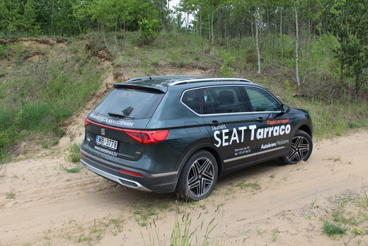 Šoreiz testējām spēcīgāko 2.0 dīzeli ar 140 kW (190 ZS) jaudu un pilnpiedziņu. Iespaidīgs maksimālais griezes moments 400 Nm, taču paša auto svars arī iespaidīgs – apmēram 1.8 tonnas. Šajā testa braucienā pilnpiedziņas “Tarraco” ar automātisko transmisiju nevienā brīdī nelika just jaudas trūkumu, demonstrējot labu dinamiku neatkarīgi no ceļa apstākļiem. Arī “Tarraco” spēja manevrēt pilsētas satiksmē, par spīti gabarītiem, pelna uzslavu. Stūres reakcijas ir precīzas un informatīvas, bet gaitas komforts - līdzsvarots. Lai gan “Seat” šo modeli cenšas pasniegt kā vissportiskāko auto savā segmentā, no šī auto nav jāgaida ne izcila pielipšana asfaltam, ne sportiska manevrēšana. "Sport" režīms darbojas atbilstoši auto formātam, bet ne vairāk. Jā, uz asfalta tas ir sportiskāks par “Nissan X-Trail”, bet tie, kas braukuši ar “Kodiaq”, diez vai jutīs atšķirības. Ja nu vienīgi "sport" režīmā jaušamas nedaudz asākas atbildes reakcijas uz gāzes pedāli un tāpat - nedaudz asāka stūre. Kolēģi esot izpētījuši, ka “Tarraco” smaguma centrs atrodoties par 20 mm zemāk, nekā “Kodiaq”. Un, manevrējot dinamiskā režīmā, šiem milimetriem tomēr ir nozīme.