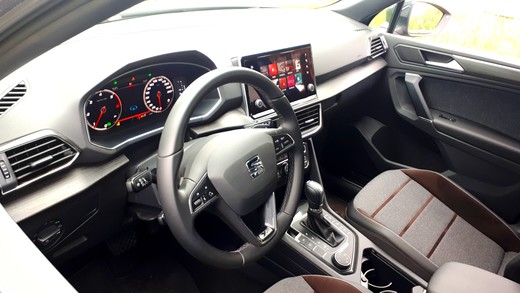 “Tarraco” salona noformējumu raksturo tīras, klasiskas līnijas. Vadītāja sēdpozīcija ir augsta, kā jau tas piedienas īstā krosoverā. Digitālais instrumentu panelis iekļauts jau standartaprīkojumā, tāpat kā paneļa centrā iespraustā planšete ar skārienfunkciju, tās izvēlne ir latviski. Ērta centrālā konsole ar klimata regulāciju, lai nebūtu jāmeklē 8 collu ekrānā, kam abās pusēs mediju sistēmas pamatfunkcijas arī pieejamas ar sataustāmām pogām. Ekrānā no 180 grādu kamerām varam apskatīt auto dažādos rakursos – no augšas, sāniem vai panorāmas skata. Trokšņu izolācija ir teicama, sēdekļi ir visai plakani un pacieti, bet ērti, salona apdare – vienkārša, bet gaumīga. Izvēloties dārgākās “Tarraco” modifikācijas, šis auto jau kļūst gana reprezentabls, ņemot vērā pilno ādas apdari un citus akcentus, kas, pateicoties nevainojamai montāžas kvalitātei, izskatās ne par kapeiku lētāk par "Audi" standartiem. Pārsteidz iespaidīgais plašums, kas tiek piedāvāts aizmugures sēdeklī braucošajiem pasažieriem. Ļoti viegli un ērti ievietot bērnu sēdeklīti. Aizmugurējie atsevišķie sēdekļi ir bīdāmi 18 cm diapazonā ar maināmu atzveltnes leņķi. Tos nolokot, auto aizmugurē var iekārtot guļvietu pat 1,88 m garam sagurušam līgotājam.