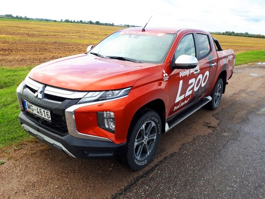 Jaunais "Mitsubishi L200", 2.4 DID 4WD 5AT (181 ZS), cena 30 990 EUR. Izskatās efektīgi, iespējams, ka šobrīd glītākais pikaps Latvijas tirgū. Bet šajā braucienā tas īsti neiederas citu "Gada auto 2020" pretendentu vidū, jo braukšanas īpašību ziņā jūtami atšķiras no jebkura vieglā pasažieru auto. Pikapa šoferītim patiešām nācās krietni pasvīst, lai uz ielāpiem klāta, līkumota asfalta ceļa turētos līdzi mazajam "Clio". Ja šogad nebūs nominācijas "Gada pikaps", varbūt šis lielais pilnpiedziņas auto varētu pretendēt uz "Gada apvidnieka" titulu?