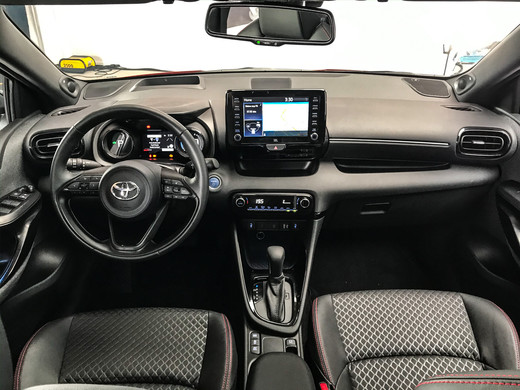 Pateicoties garākai riteņu bāzei (salīdzinot ar iepriekšējo modeli), ir palielināta telpa salonā. Zemāks kļuvis gan gravitācijas centrs, gan sēdpozīcija. Priekšējie sēdekļi novietoti par 60 mm vairāk uz aizmuguri. Salonā Toyota ievēo ‘less is more’ jeb ‘mazāk ir vairāk’ principu. Centrālais panelis ir sadalīts divās daļās – klimata kontrole un multimediju displejs pa acu skatienam. Multimediju sistēma gan ir Toyota modeļu vājais punkts – vecmodīga grafika un vāja izšķirtspēja. Cerams, ka līdz Yaris ražošanas uzsākšanai būs kāds labāks risinājums. Mērinstrumentu panelis ir pilnībā digitāls, taču fiziski segmentēts. Tas veidots kā binoklis – divi displeji apaļos rāmjos, bet starp tiem vēl viens taisnstūra displejs.