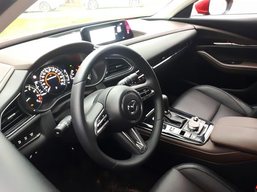 Vienīgais, kas pirmajā brīdī šķiet neparasti - audiosistēmas skaļuma regulatora poga novietota uz vidustuneļa, pie ātrumpārslēga. Taču tam ir sava loģika - "Mazda" 8,8 collu infosistēmas displejs ir kontrolējams ar vieglu pirkstu kustību nospiežot un pagriežot slēdzi turpat pie ātrumpārslēga, bet audiokontrole ir turpat blakus.