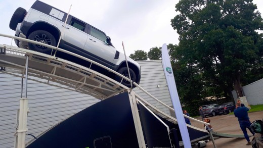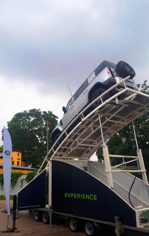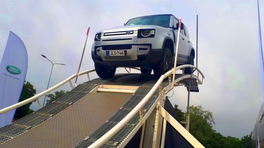 Latvijas auto žurnālisti šodien, 31.jūlijā, tika pie iespējas gūt jaunu, unikālu pieredzi – pie jaunā bezceļu karaļa Land Rover Defender stūres izmēģinot šī auto sniegtās iespējas speciāli izveidotā kalnā braukšanas simulatorā, uzbraucot pa stāvu kāpumu apmēram trīsstāvu mājas augstumā un pēc tam atpakaļ lejā. Šis pasākums Land Rover salonā Rīgā bija pasaules Land Rover Experience tūres daļa.