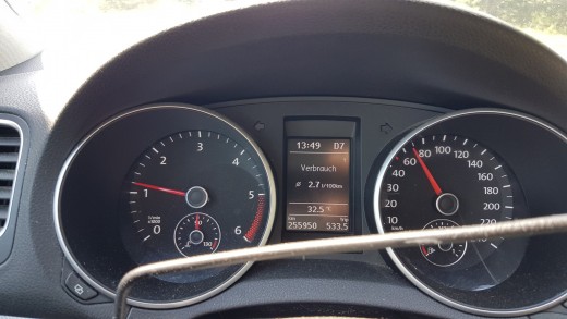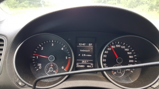 Bija novērots, ka 2012.gada Volkswagen Golf ar 1.6 TDI (105 Zs) dzinēju pēc borta datora uzrāda patīkami mazu degvielas patēriņu, ja ir atbilstoši laika apstākļi un augsta gaisa temperatūra. Un tā, vienā no jūnija karstajām dienām šāda situācija "pieteicās pati no sevis". Bija jābrauc uz Rīgu no Vidzemes, termometrs rādīja ap 30 plusā, dienvidu vējš, kas īsti, ne palīdz, ne traucē, turklāt steigties nebija nekādas nepieciešamības. Nedēļas nogalē ceļš galvaspilsētas virzienā bija maz noslogots, tādēļ tika izvēlēts visekonomiskākais ātrums, kurā 105 Zs dīzelis patērē vismazāk degvielas. Pēc autora novērojumiem tie ir 70 km/h, bet, varbūt kādam ir cita pieredze.