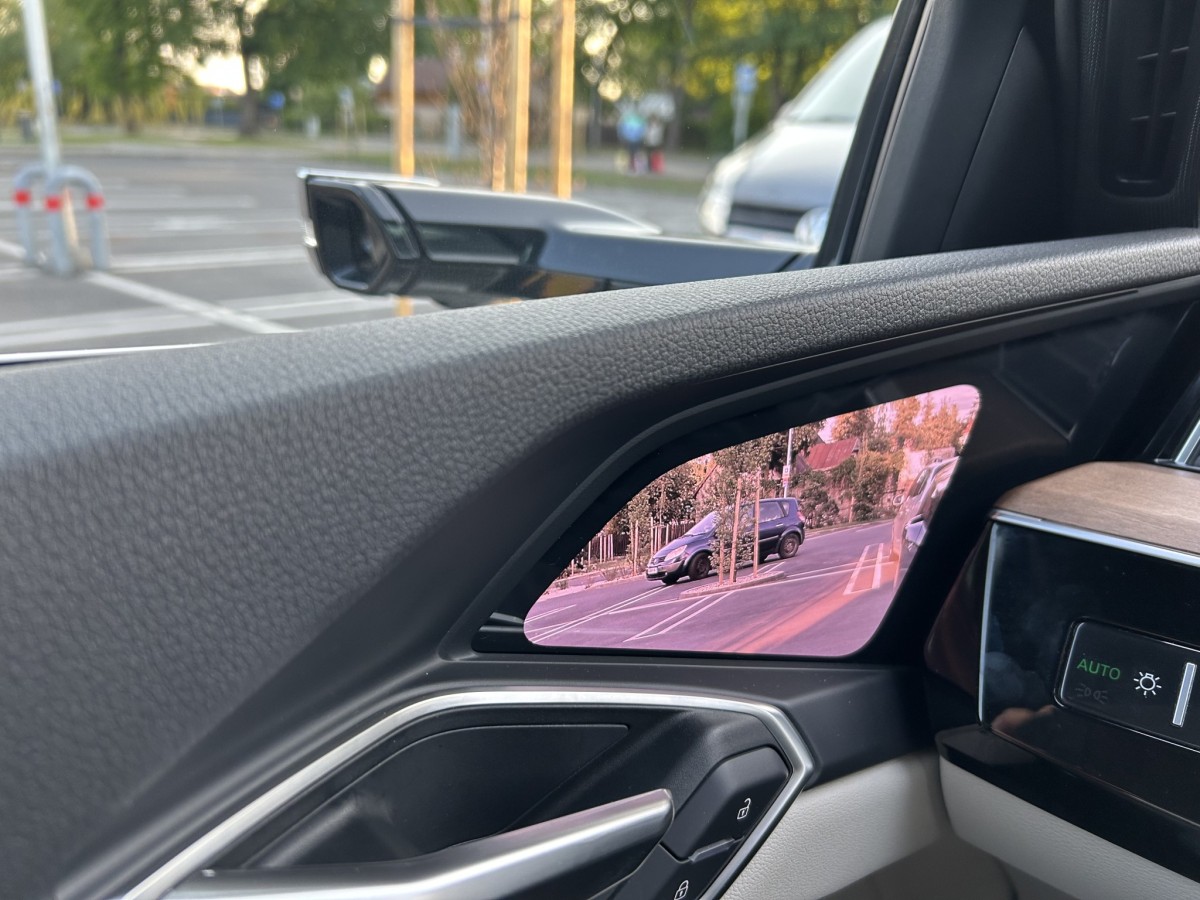 To pašu var teikt arī par priekšējo lukturu projekcijas funkciju, kas naktī uz ceļa dinamiski zīmē horizontālas, vertikālas un diagonālas līnijas, un beigās vēl priecē ar animētu uzrakstu e-tron. No vienas puses pilnīgi nevajadzīga lieta. No otras – kādēļ gan nepapriecāties, ja reiz esi nolēmis atvēlēt 5000 eiro, lai savam auto uzstādītu digitālos Matrix LED lukturus, kas spēj daudz vairāk nekā tikai izgaismot ceļu 200 metrus uz priekšu? Vai, piemēram, virtuālie sānu spoguļi. Tas ir vēl viens aprīkojuma elements, kas mašīnā iedveš inovatora garu un piedevām vēl kardināli izmanaina ārējo izskatu. Pats es savam auto tādus nekad negribētu, jo trūkst vēlamā praktiskuma, tie neveicina braukšanas drošību, jo neļauj precīzi novērtēt attālumu līdz aizmugurē braucošajiem auto, un arī neizskatās sevišķi labi. Taču, ja kāds var atvēlēt vēl kādus 1500 eiro, tad kāpēc nē? Lai notiek un Q8 e-tron majestātiski atturīgais ārējais dizains iegūt tehnoloģiskāku piegaršu.