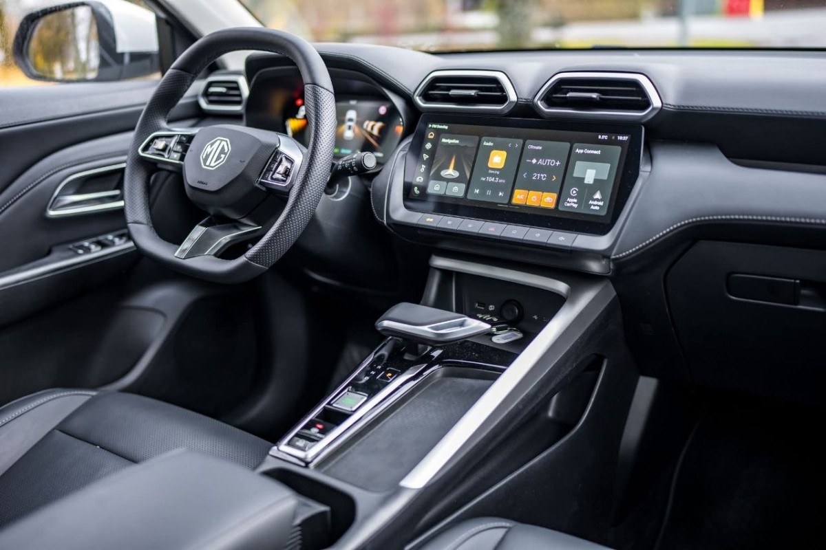 “MG ZS” ar 4.43 metru garumu ir starp lielākajiem automobiļiem savā klasē, un praktiski ir pat lielāks par vienu otru kompaktās klases krosoveru. Tāpēc nav brīnums, ka “ZS” ir plašs salons, kur viens aiz otra var sasēsties pat gara auguma cilvēki. Vadītāja vietai raksturīga augsta sēdpozīcija, bet var gana ērti iekārtoties un vadības ierīces ir ergonomiski izkārtotas. Sekojot tendencēm, arī šeit funkcijas pārsvarā tiek vadītas 12.3 collu (10.25” bāzes versijā) lielā skārienjutīgajā ekrānā, tomēr zem tā ir arī fiziski taustiņi, ar kuriem ātri piekļūt vajadzīgajai izvēlnei. Pati infosistēma ir saprotama, samērā vienkāršā un intuitīva. Jau bāzes komplektācijā ir “Apple Car Play” un “Android Auto” savienojumi. Automobiļa stūre regulējas tikai augstumā un prasās garākas logu tīrīšanas slotiņas, jo vējstikla augšmala paliek nenotīrīta. Apdarē cieti un lētāki materiāli mijas ar mīkstiem un augstvērtīgākiem. Kopumā montāžas kvalitāte šķiet laba, bet ne izsmalcināta. Ar laiku var pamanīt brīvkustības dažādos atsevišķos salona elementos, piemēram, rokturos durvīs un virs galvas.