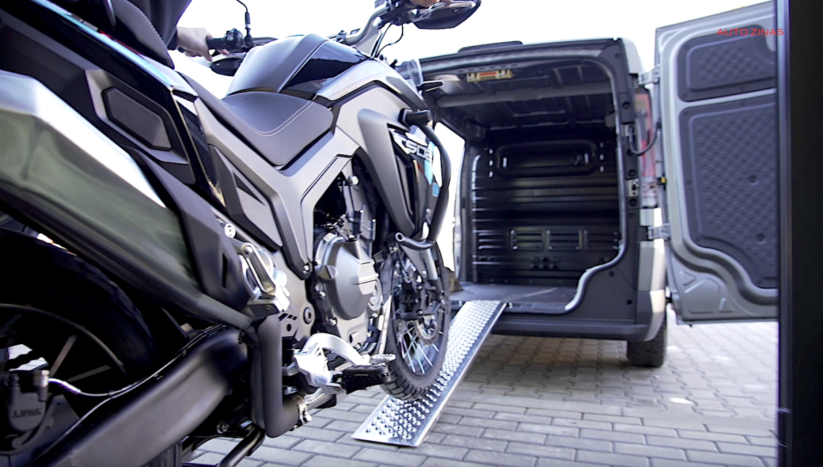 Transmisijas svira tāpat kā citiem elektriskajiem Kia ir zem stūres. Baterijas ietilpība ir virs 71 kWh. Ar vienu uzlādi var nobraukt vairāk nekā 400 km, ziemā 300 - 350 km. Bet ko ar tādu strupuci var aizvest? Paša furgona garums ir 4,7 metri, kravas telpas ietilpība 4,4 kub m, bet kravnesība 790 kg. Attālums starp arkām ir tāds, ka eiropaleti ielikt var, bet tikai gareniski. Te mums gatavs palīdzēt Toms no KMoto. Pārvarējis pirmo mulsumu par aizmugurējām durvīm bez roktura, viņš atzinīgi novērtē slīddurvis abās pusēs un to, ka aizmugurējās viras var atvāzt 180 grādu leņķī - gandrīz kā īstā busā! Praktiskais tests aprāda, ka motorollers un neliels motocikls Kia elektrofurgonā atrod vietu bez pūlēm. Pašam pieliecoties PV5 cargo uzņem arī kārtīgu ielas moci, bet adventure tehnikai tas tomēr ir par zemu. Traucē motocikla stikliņš un spoguļi. Tos vēl varētu noņemt, bet ceļojuma moča klīrenss dara savu. Atkarībā no baterijas izmēra un aprīkojuma KIA EV5 Cargo maksā no 42 līdz 45 tūkstošiem eiro. Tas jau ir apsvēršanas vērts, jo maksā tikpat cik elektriski furgoni bez sevišķām pazīmēm un ar triviālu dizainu. Vairāk skaties TV Autoziņu sižetā.