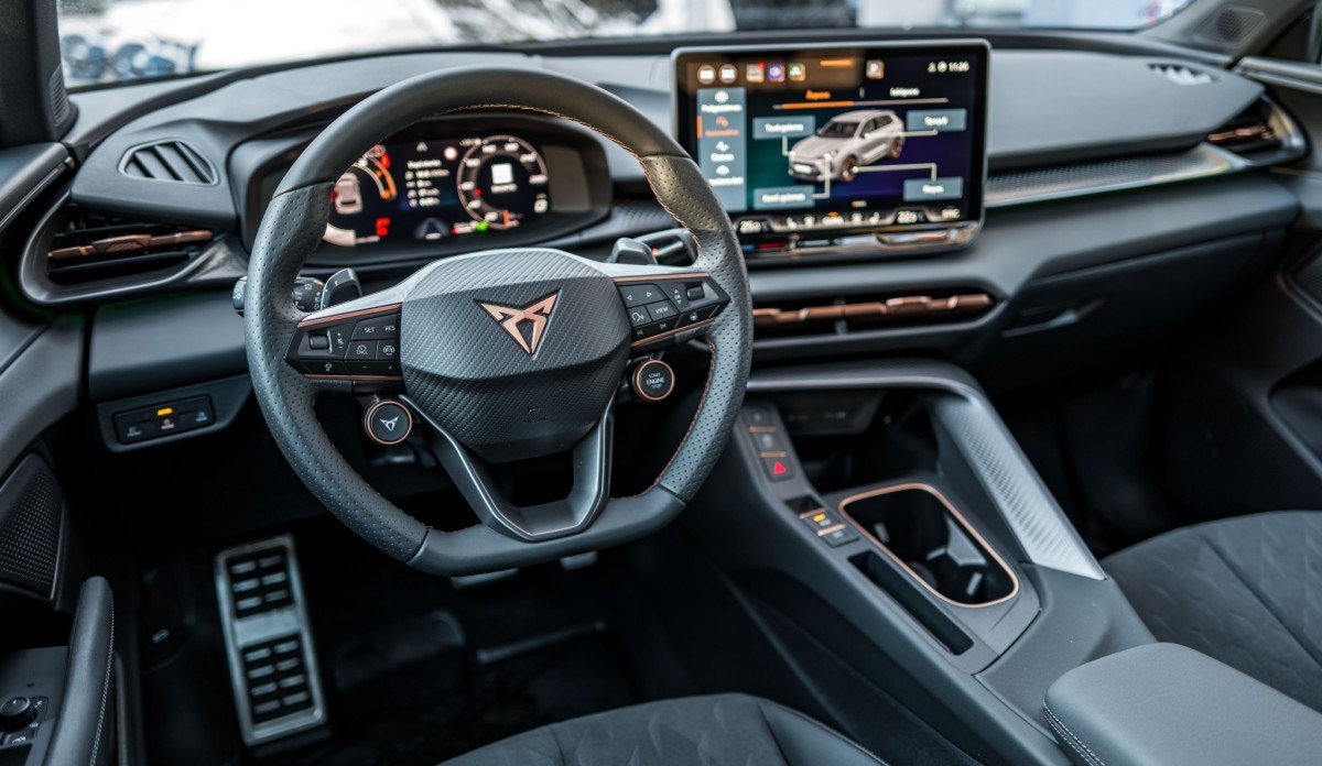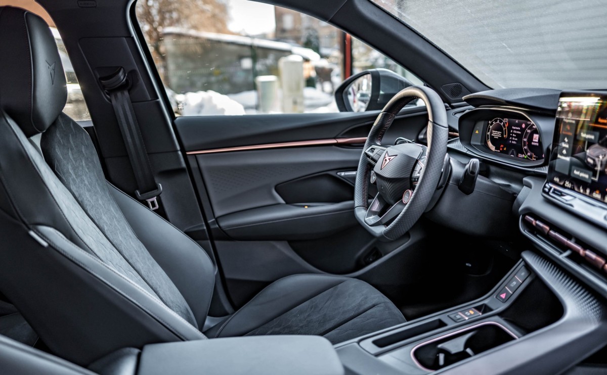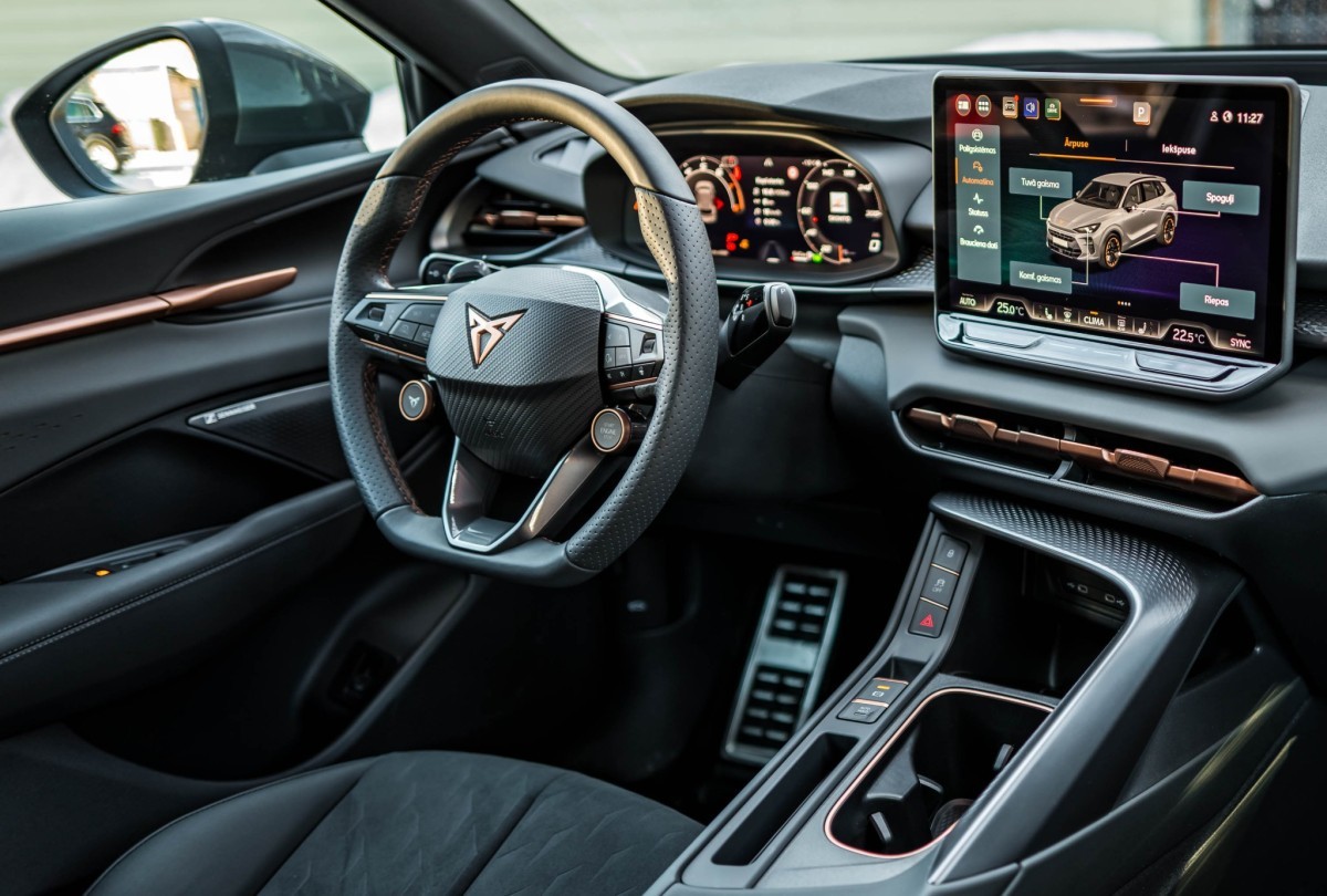 Arī automobiļa salonā valda sportiskāks gars, jo “Terramar” priekšējais panelis orientēts vadītāja virzienā, tā centrā novietots 12.9 collu skārienjutīgais ekrāns. Vidējā konsole priekšējā paneļa virzienā kļūst augstāka, atgādinot sēdēšanu kādas sacīkšu automašīnas kokpitā. Šo sajūtu pastiprina zemā sēdpozīcija. Fizisko taustiņu klātbūtne ir visai minimāla - ja nu vienīgi uz stūres, audio sistēmas un kruīza kontroles vadībai. Pārējās funkcijas nākas regulēt multimediju sistēmas ekrānā. Tas piedāvā asu attēlu un labu reakciju, arī izvēlnes kopumā ir saprotamas un daudz vieglāk lietojamas nekā agrākajos “Cupra” modeļos. Par salona apdari rodas augstvērtīgs iespaids. Pārsvarā ir izmantoti mīksti, taustei patīkami materiāli un “Alcantara” mākslīgā zamšāda. Atsevišķi dizaina elementi veidoti no cietākas plastmasas, bet tie ir prasmīgi izmantoti, lai padarītu salonu interesantāku.