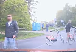 Velosipēdists sadusmojas par to, ka autovadītājs pirms pārejas bremzē tik vēlu, ka abi transportlīdzekļi gandrīz vai saskaras. Lasīt vairāk